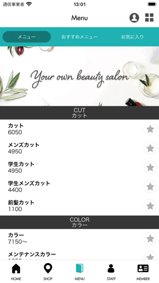 気になるサロンメニューや価格をアプリから簡単にご確認いただけます。