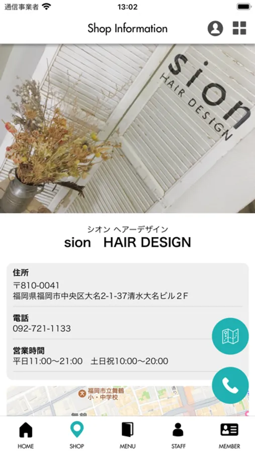 店舗のマップが表示され、地図アプリとも連携しているので、初めてのご来店の時も簡単に見つけることができます。
