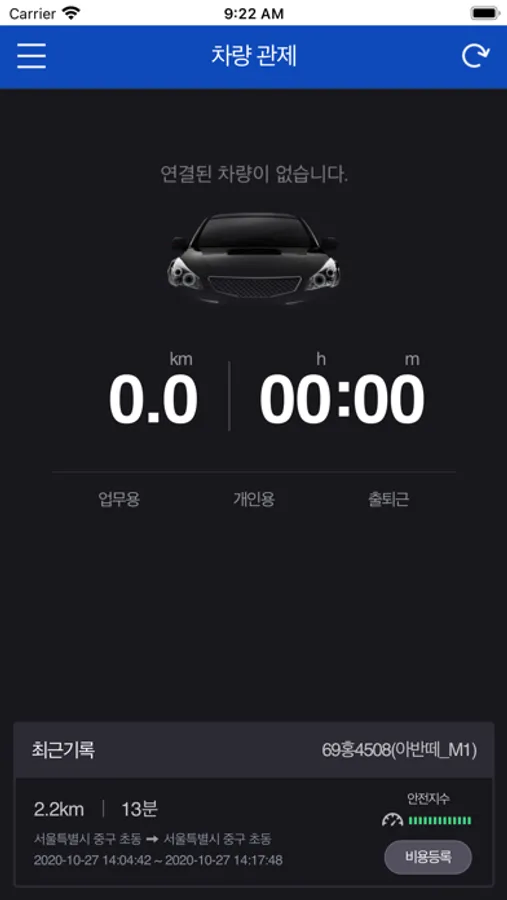 본 서비스는 자동으로 운행 시간 및 거리를 기록하고 관리해주며,