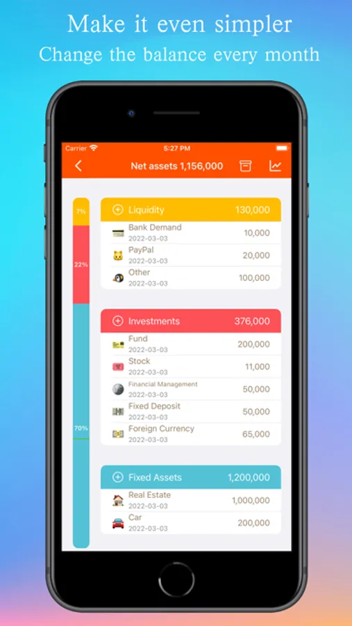 Line chart: Easily grasp the increase and decrease of assets and the proportion of various assets and liabilities.