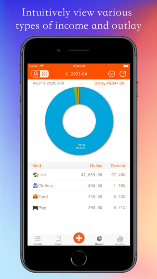 Pie chart and bar chart: Intuitively view various types of income and expenditure and the proportion of each member.