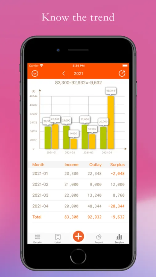 Histogram: a year's income and expenditure, various comparisons, see the increase and decrease: know the trend.
