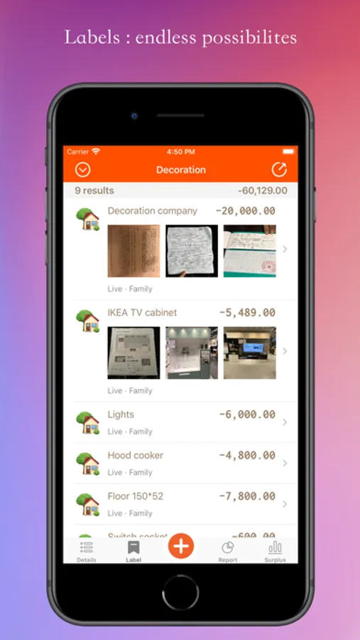 * The label function is simple to get: travel reimbursement, human relations, travel expenses, decoration statistics, borrowing and repayment, travel agency recording tour groups, card issuing merchants managing card users, etc....More functions are waiting for you to explore.