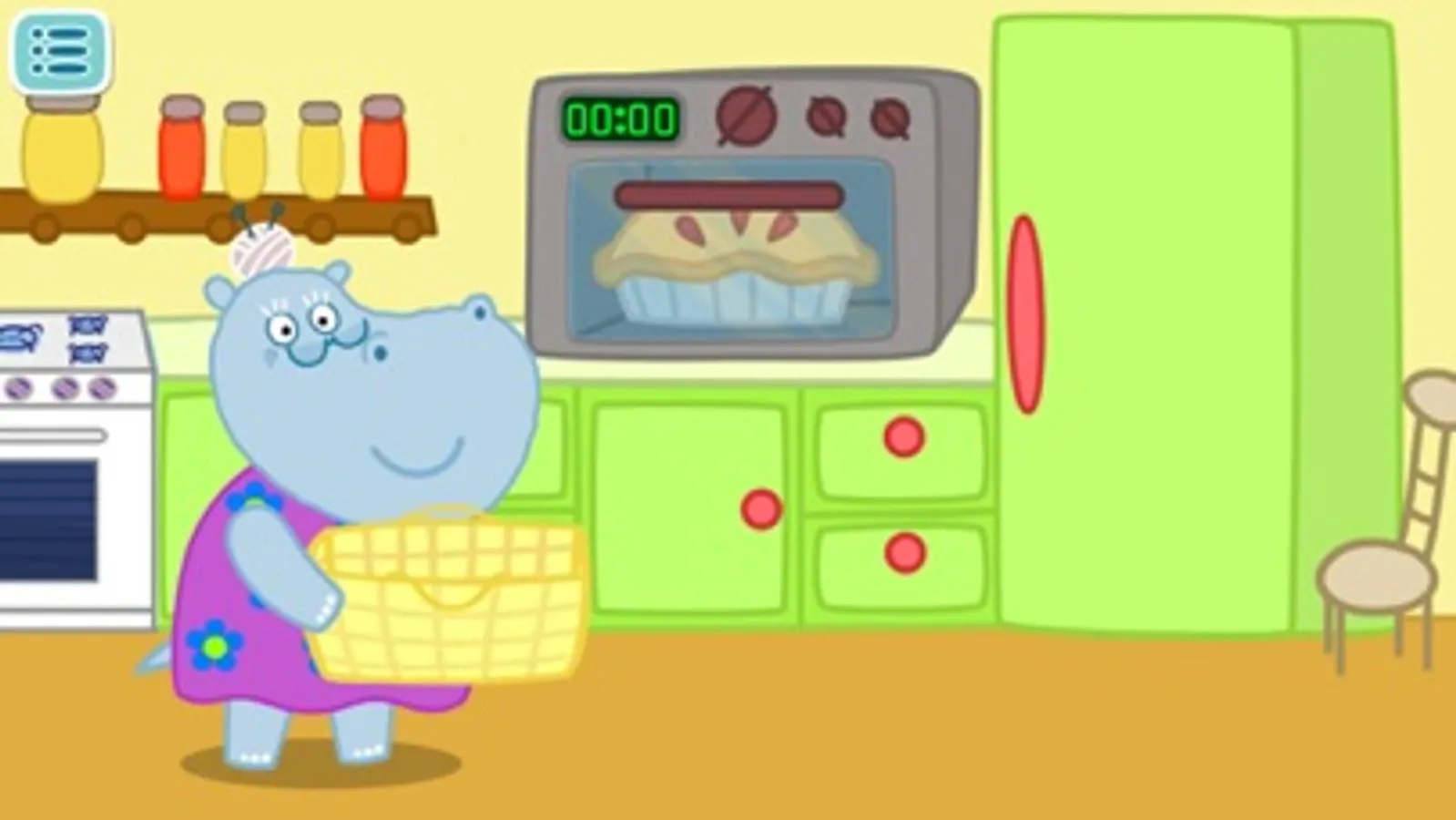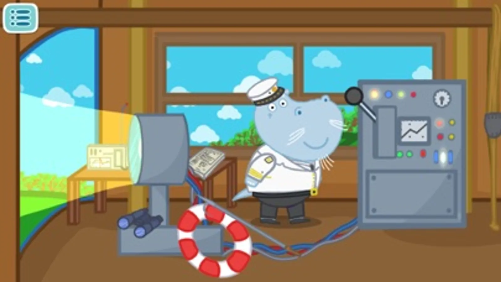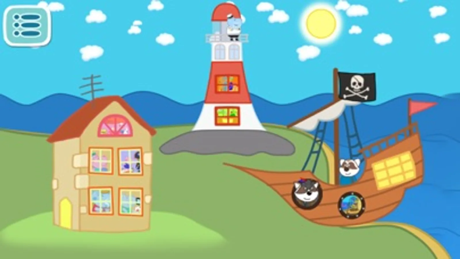 Good morning, Hippo Town! Visit everybody and wish good morning. Daddy Leo is a sleepyhead. Wake him up! Do morning exercises and eat a delicious breakfast. Visit grandfather at the lighthouse. And find out what the inhabitants of the mysterious pirate ship do in the morning.