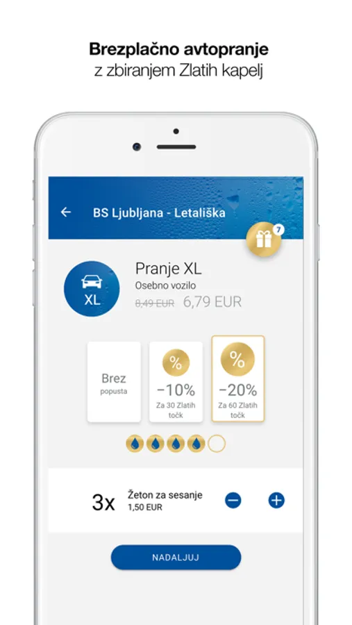 2. Izberite vrsto avtopranja in popust na Zlate točke.