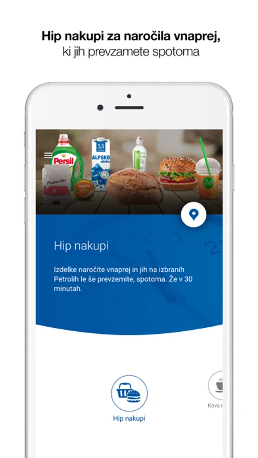 - Hip nakupi - naročilo in plačilo hrane Fresh ter izdelkov za dom vnaprej in prevzem ob želenem času na izbranem Petrol prodajnem mestu. Že v 30 minutah.