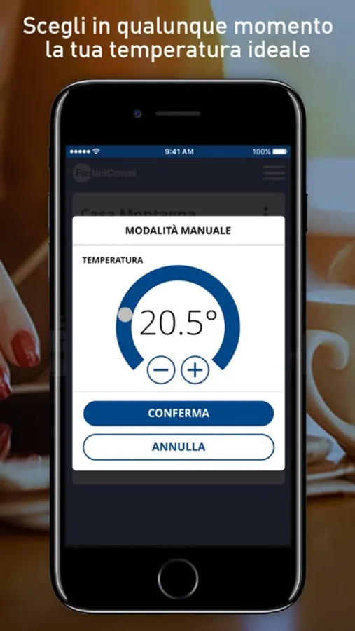 Con la nuova app Intelliclima+ sei sempre connesso al tuo cronotermostato Fantini Cosmi e puoi gestire il tuo comfort ideale in modo semplice e intuitivo, da smartphone, tablet e Google Home**, ovunque tu sia.
