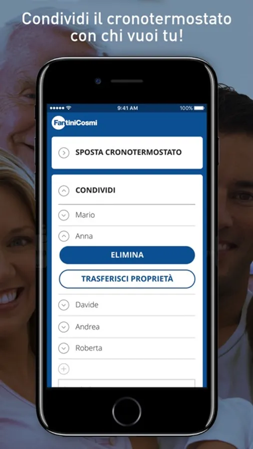 • Condividi la gestione del cronotermostato con gli utenti che desideri