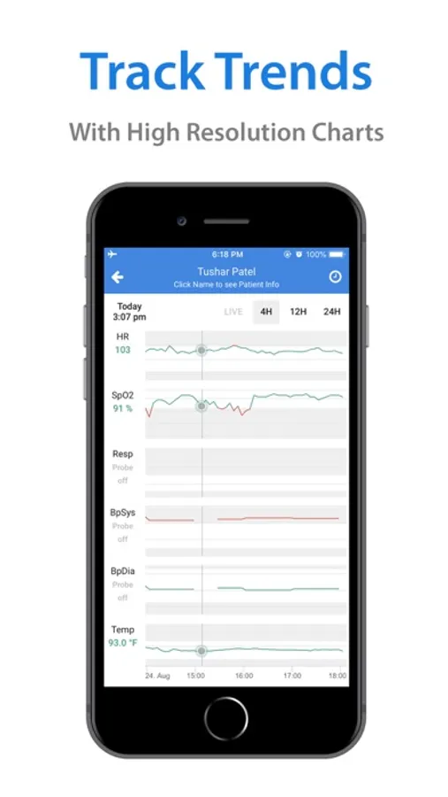 Stasis allows you to check up on your patients from anywhere at any time. When your patients are on the Stasis Monitoring System, they automatically show up on the Stasis mobile app. From the app, you can conduct virtual rounds, tracking patients' health throughout the patient journey.