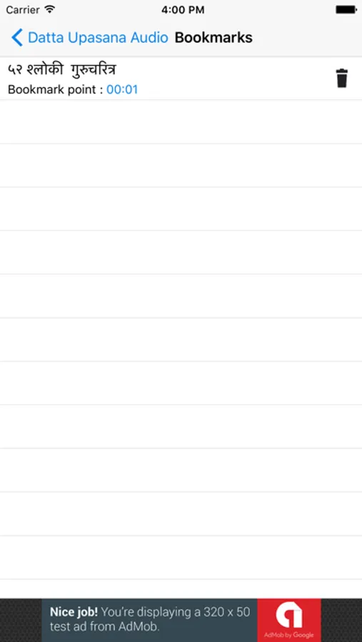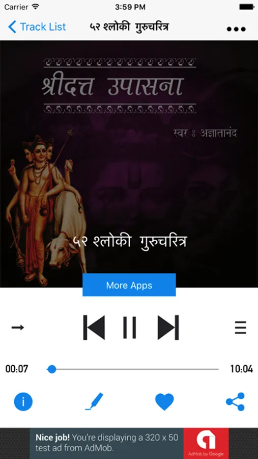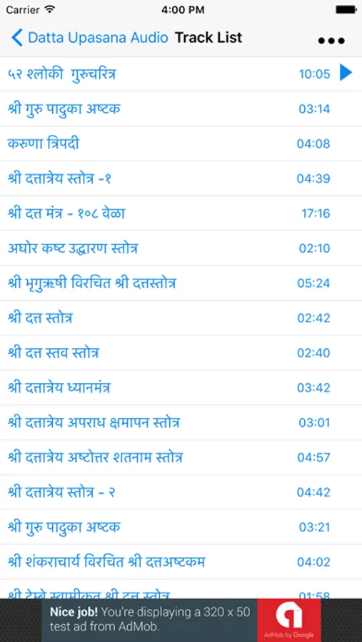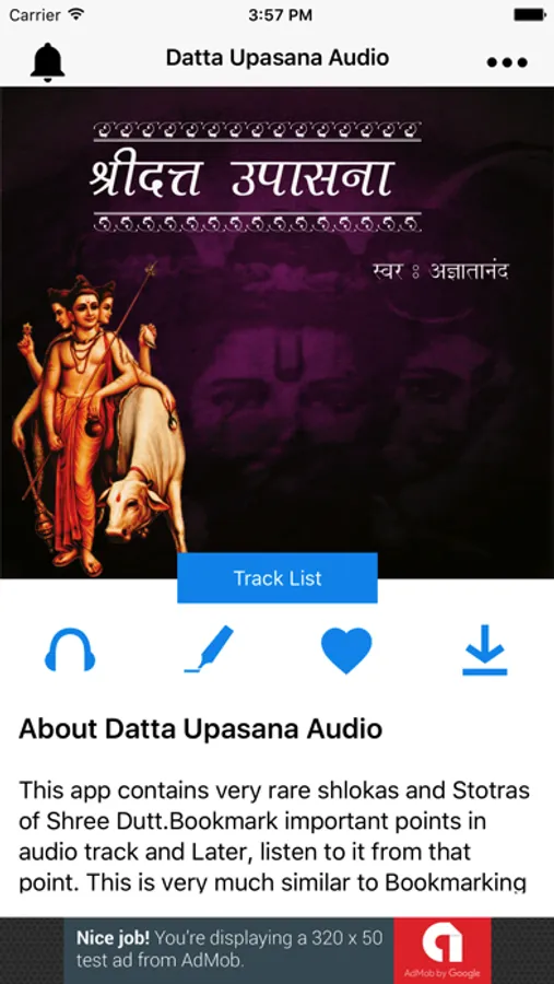 This app contains very rare shlokas and Stotras of Shree Dutt.Bookmark important points in audio track and Later, listen to it from that point. This is very much similar to Bookmarking that we do while reading a book.Highlight specific section of an audio track and listing to it again. You can even listen that highlight in Repeat Mode again and again.