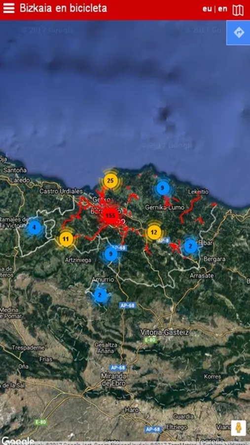 Bizkaiako Bidegorriak te permite obtener información sobre las vías ciclistas y bidegorris del Territorio Histórico de Bizkaia.
