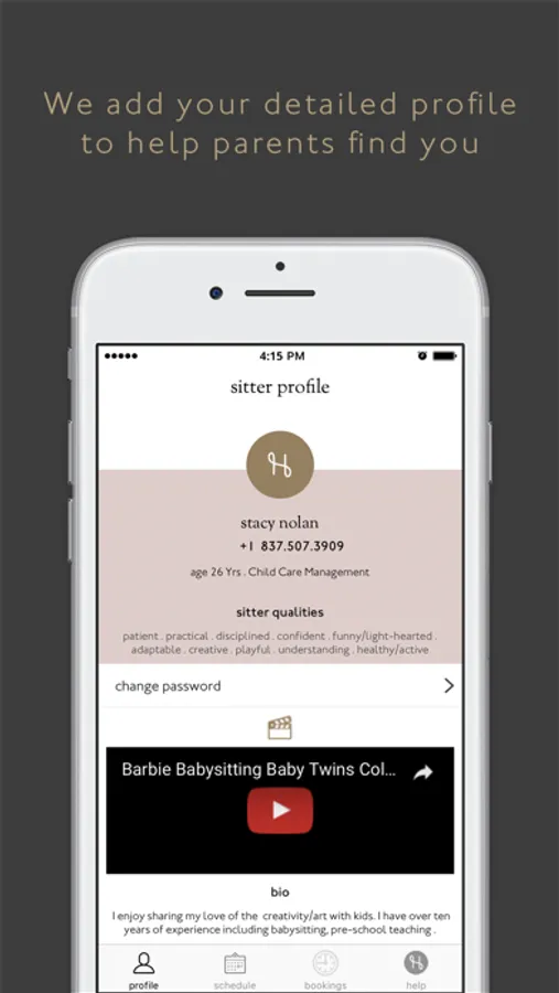 Hello Sitter is an on-demand service that matches sitters with families. You can apply to be a part of Hello Sitter by downloading the app. Existing sitters are able to log-in with credentials provided.