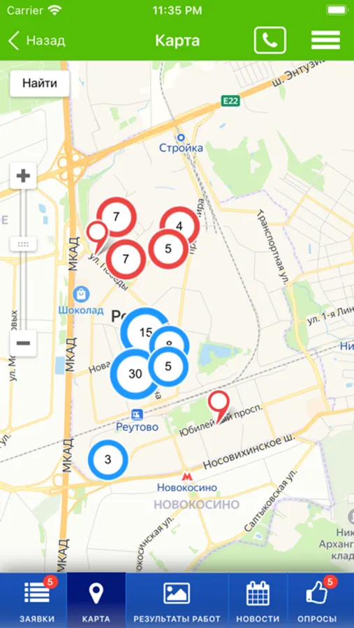 Приложение позволяет быстро связаться с городскими службами и проконтролировать исполнение заявки.