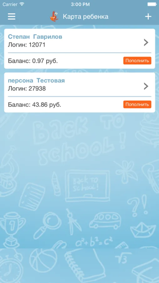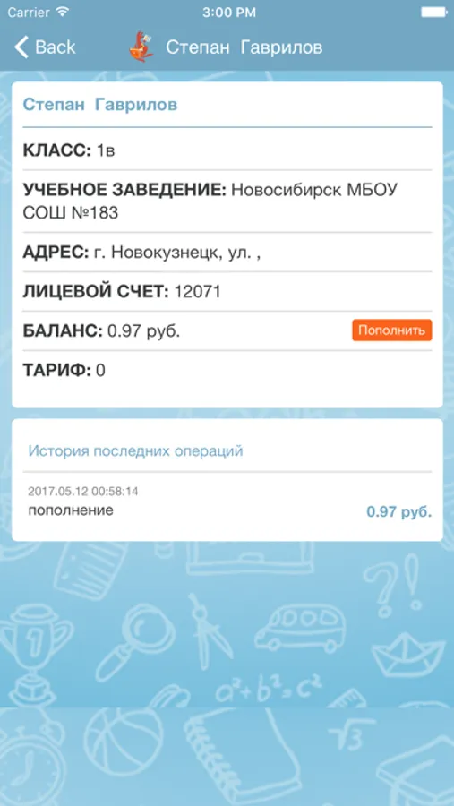 Приложение для клиентов сервиса автоматизации школьного питания "КенгуДетям.Ру". При помощи приложения родители могут просматривать информацию о питании ребенка в школе и посещаемости, а также пополнять баланс карты ребенка и менять тарифный план обслуживания.