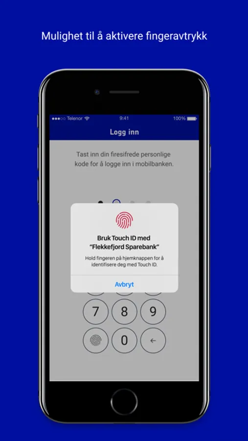 Du logger inn i mobilbanken med fingeravtrykk eller den personlige 4-sifrede koden som du valgte under aktiveringen.