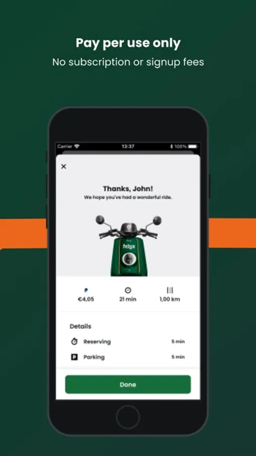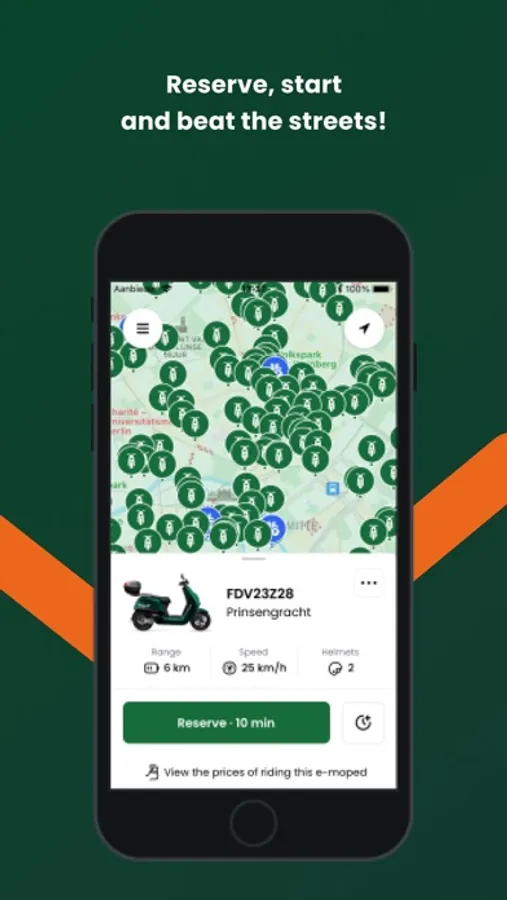 • Pausing mode: Do you want to keep your current e-moped while you stop for a while? Use the pause mode in the app at a reduced price.