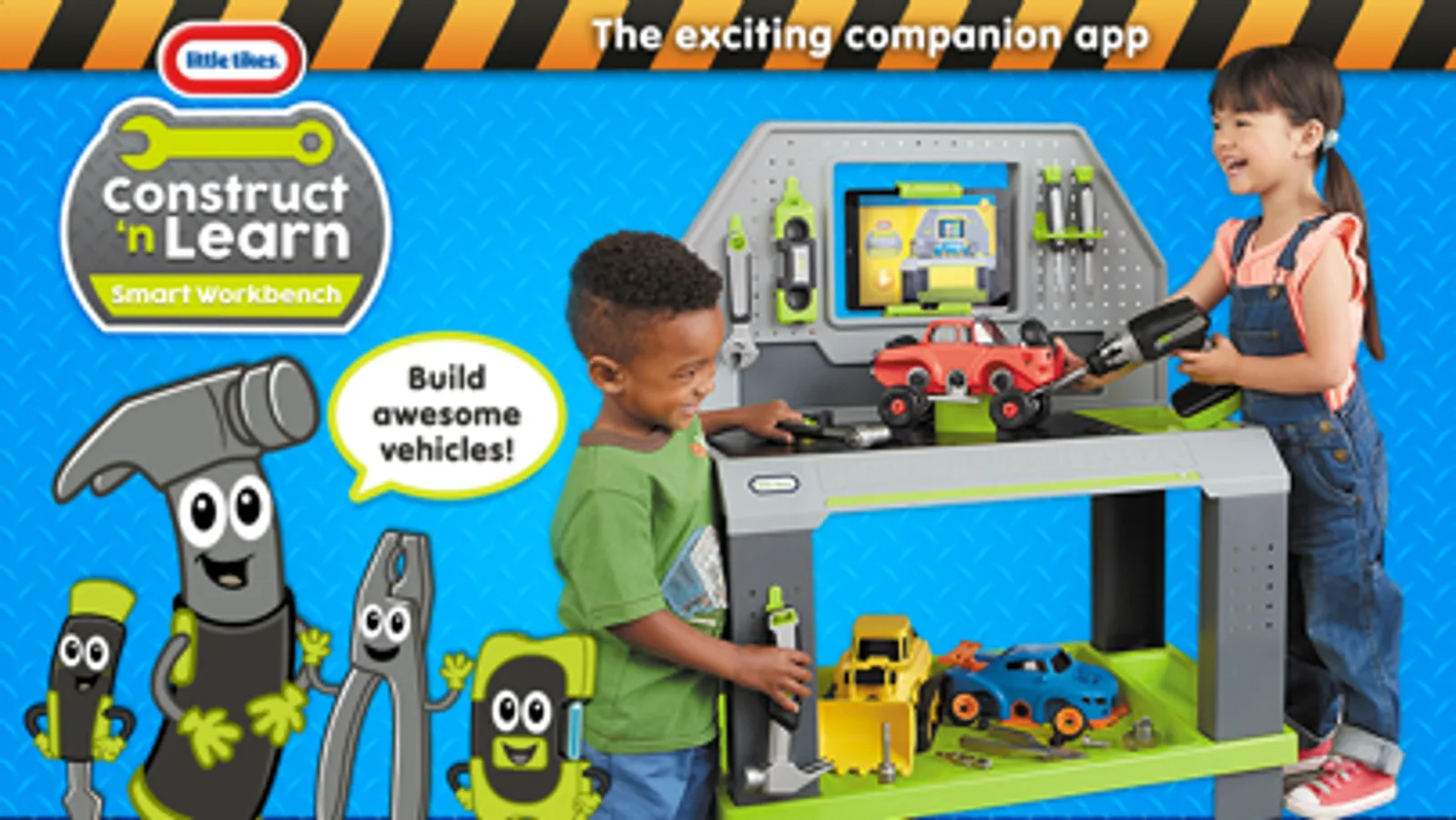 Get building smarter with the Little Tikes Construct ‘n Learn Smart Workbench! The Construct ‘n Learn Workbench companion app deepens play with responsive Bluetooth technology. Toddlers and Preschoolers will love hearing the hammer pounding, wrench twisting, and power drill spinning, just like in a real shop! The workbench has interactive accessories that come alive with this fully integrated app. *Construct ‘n Learn Smart Workbench unit required.