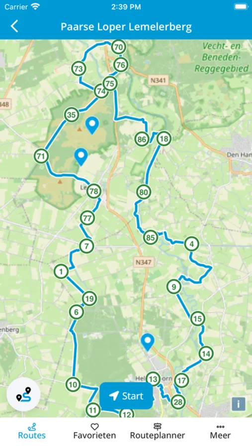 Routemaker toont je een lijst of kaart met routes. Kies er een uit. Downloadt vervolgens de route voor offline gebruik.