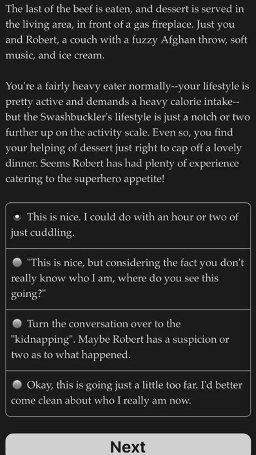 The Hero Unmasked is a 300,000 word interactive novel by Christopher Huang. It's entirely text-based, without graphics or sound effects, and fueled by the vast, unstoppable power of your imagination.
