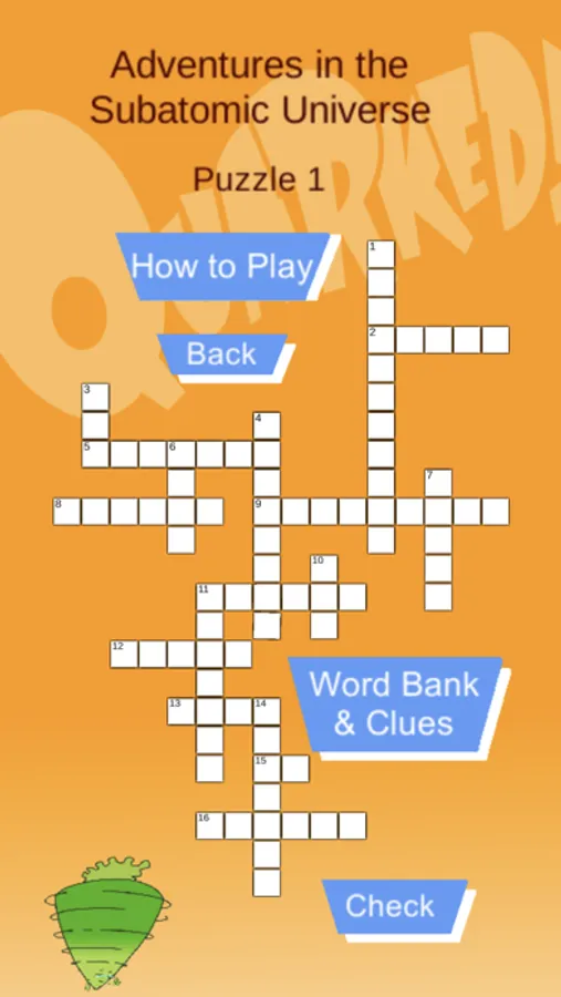 See if you know the words of the Subatomic Universe with these crossword puzzles. From the Quarked! Adventures in the Subatomic Universe project: www.quarked.org