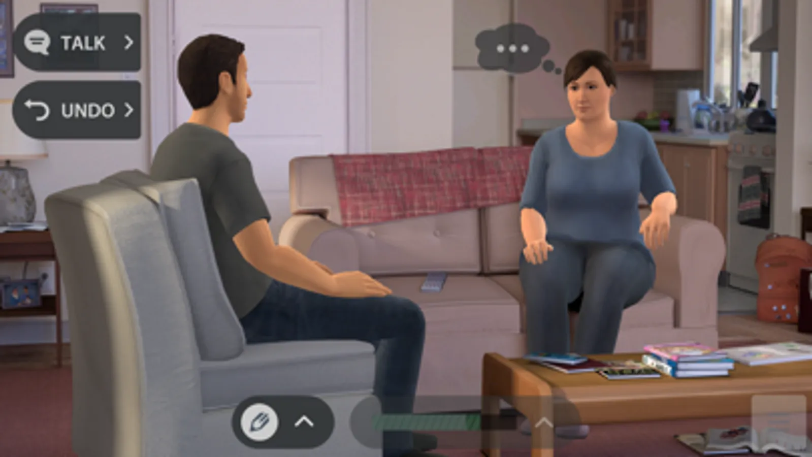 By practicing talking with virtual humans, you’ll learn positive, proven techniques to navigate these conversations in real life. The One Degree℠ app is a simulation that lets you take on the role of a concerned friend or family member and practice talking about alcohol and other substances, giving you the tools you need before you have those conversations in real life.