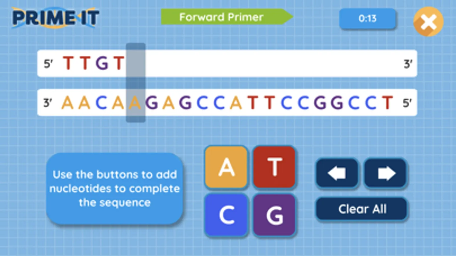 Undertaking a molecular course as part of your education? This game is aimed at students with knowledge of DNA and undertaking a molecular course. It was designed by a University of Glasgow undergraduate student and aims to help with your understanding of PCR primer design. Speed and accuracy are required to get a good score!