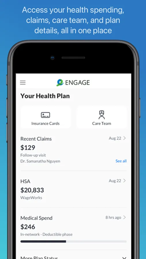 Engage Wellbeing is available exclusively to individuals and their dependents who have access to Engage through their employee benefits program. Your app features will vary depending on how your employer is set up.