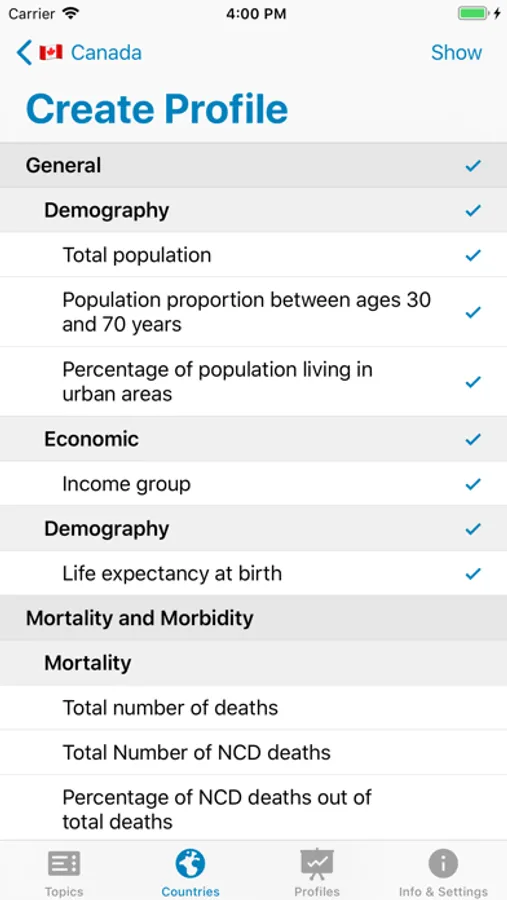 NCD Data Finder presents information for each country related to their NCD mortality, prevalence, risk factors and national systems capacity to prevent and control NCDs. The data include the number, rates and causes of deaths from NCDs and trends in NCD mortality; the prevalence of selected risk factors; and information describing current national responses to prevention and control of non-communicable diseases.