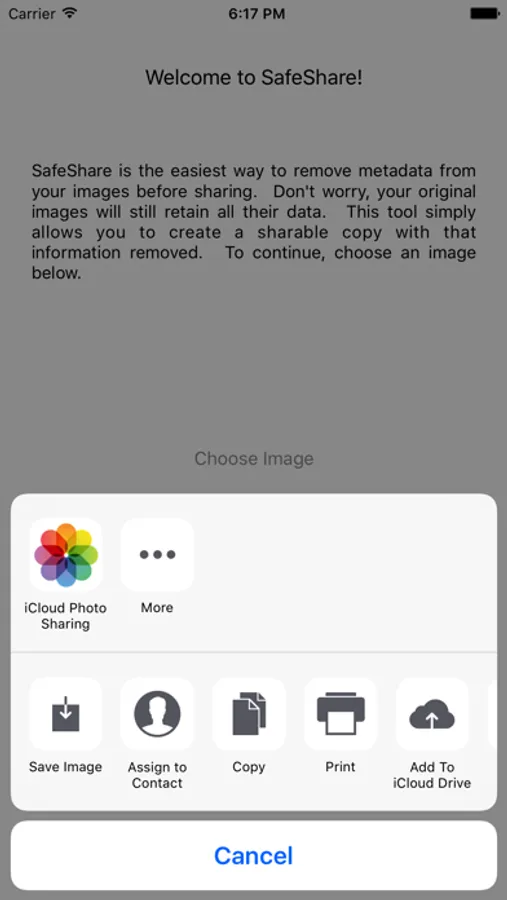 * SafeShare preserves the metadata of your original image so features like Photo's location map, Moments, faces, and categories will still function properly. Your copy of the image remains intact with all your data, while the one you share gets safely stripped!
