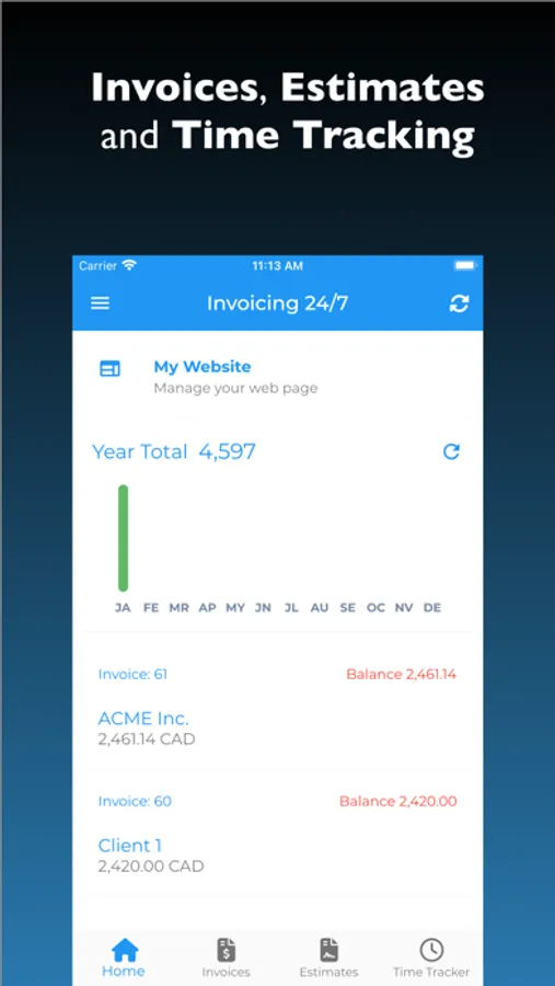 Create an unlimited number of invoices and estimates for an unlimited number of clients using your iPhone or iPad. Simple online invoice template for your business. This is an invoicing software made for small businesses and freelancers. Send beautiful, professional invoices. Everything can be managed from your smartphone.