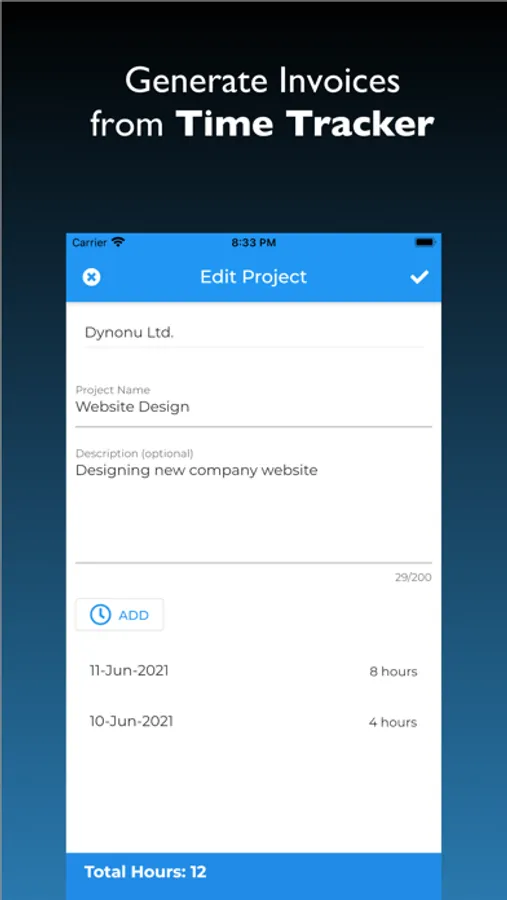 Create projects and track your time. When the project is completed, generate an invoice with one click! Clients can pay your invoices using PayPal, a Credit Card or a Debit Card.