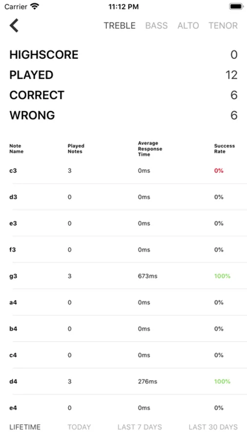 - a "timed" mode where you will have to read as many notes as possible in a timed session of 30 seconds, during which you will try to beat your high-score
