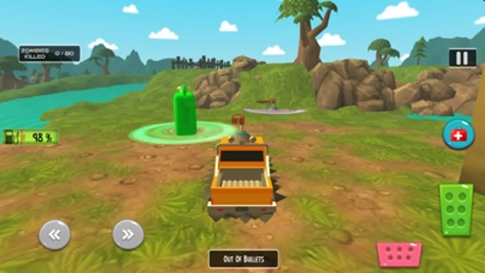 - Machine-gun, shotgun, rocket launcher, electric gun to unlock and use against the dead