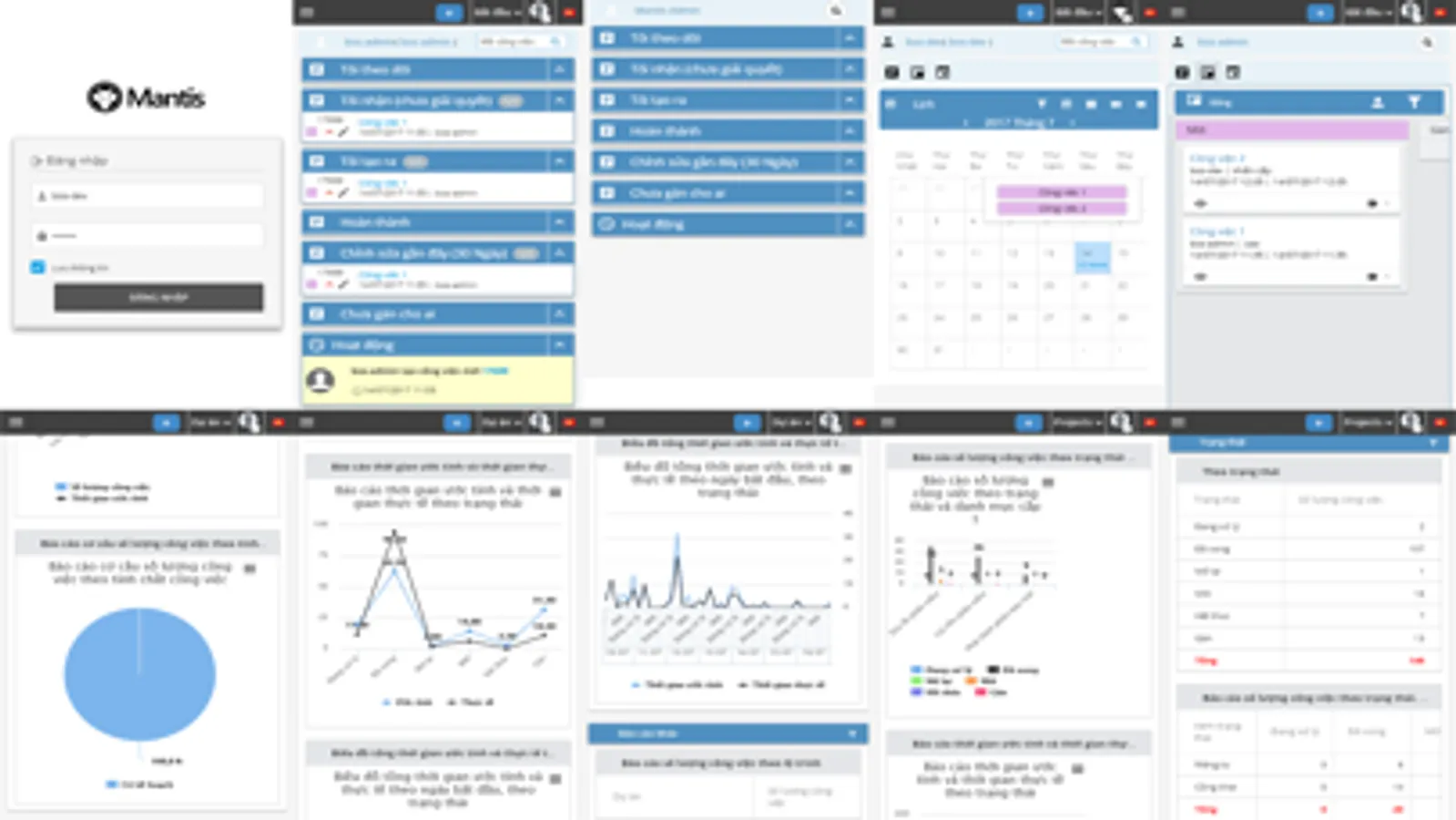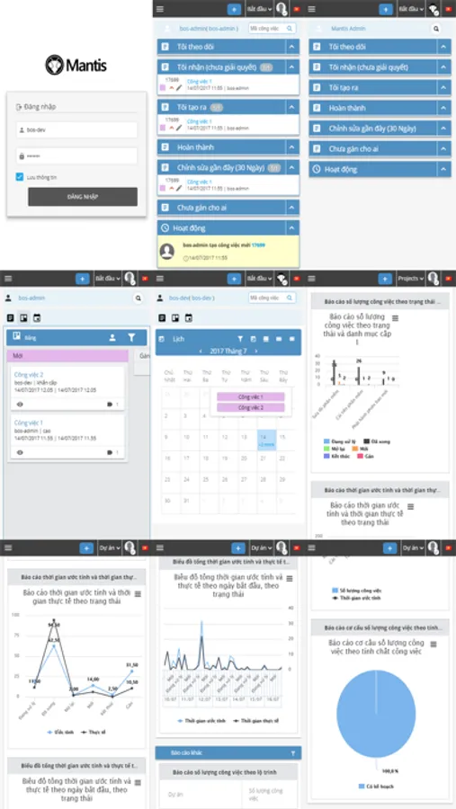 - Xem các báo cáo về trạng thái công việc theo nghiệp vụ, phòng ban, theo nhân sự thực hiện