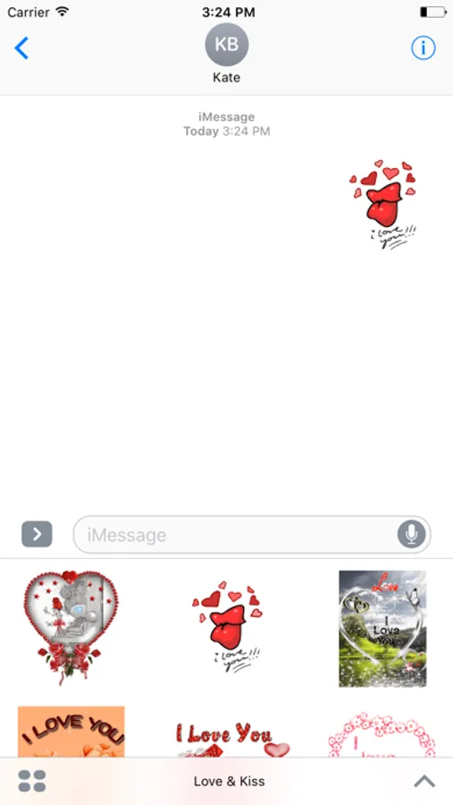 This app offers you a series of love stickers for your chat. Get amaging animated love and kiss stickers for iMessage on iOS phone and share the stickers on Facebook, Whatsapp, Messenger and many more social networks.