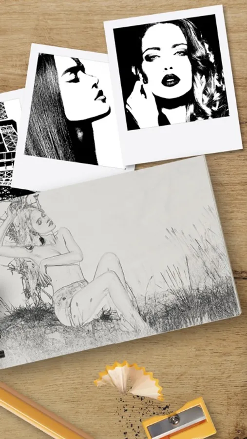 Add pencil sketch photo effect, convert your pictures to black and white pencil drawings and create beautiful artistic images.