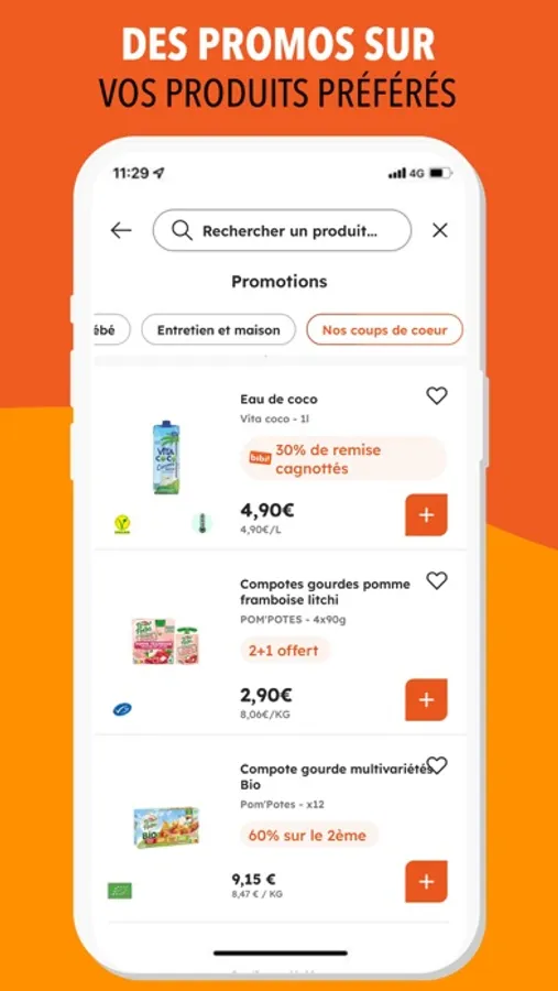 • Parcourez les rayons et ajoutez instantanément tous les produits indispensables à votre liste de courses.