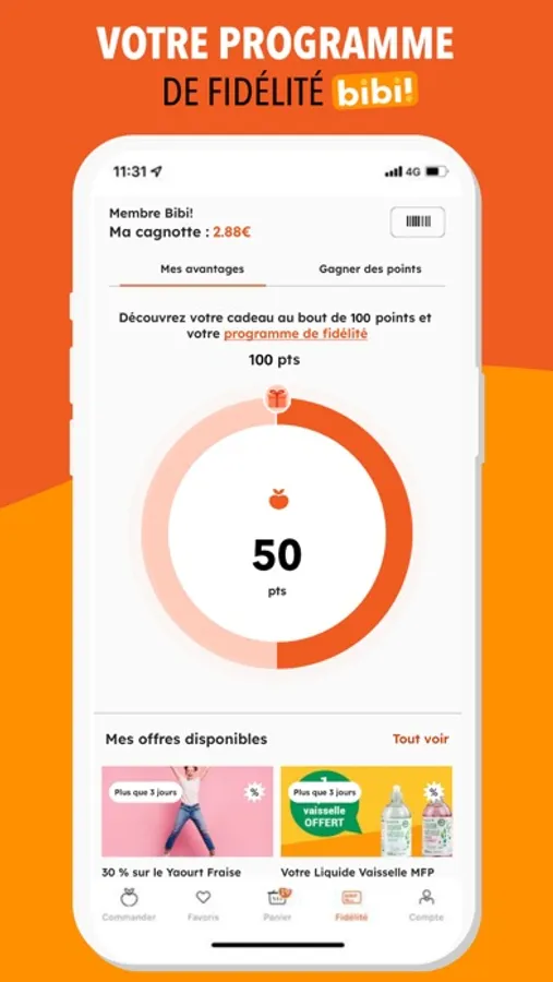 Grâce à votre espace bibi!, consultez à tout moment le solde de votre cagnotte fidélité.