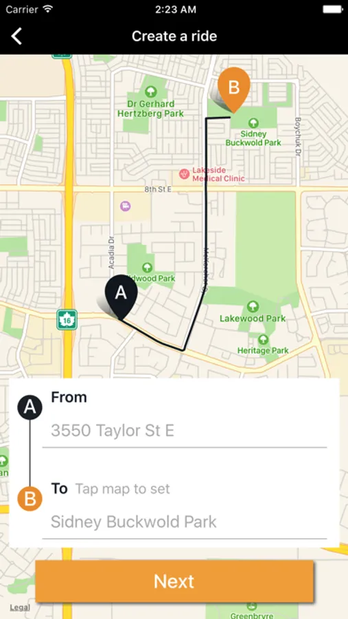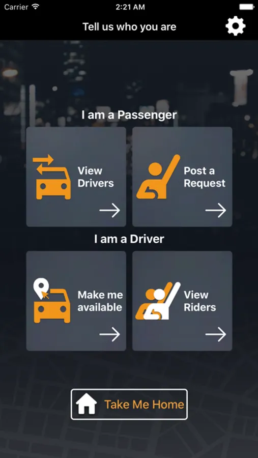 There is also a "Take me home" option that allows you to simply click on the button which sends a notification to all available drivers in your area and allows them to see your trip details (location, destination, how many passengers and how much you are willing to pay/contribute). It's fast and easy!