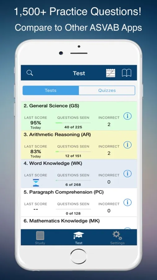 Trust the company trusted by those already in the military. ASVAB PRO includes 1,500+ practice questions and 1,000+ instructional and tip slides covering all subjects. Compare to other ASVAB / AFQT apps!