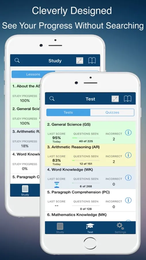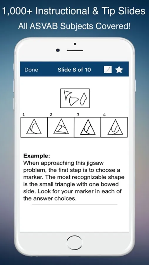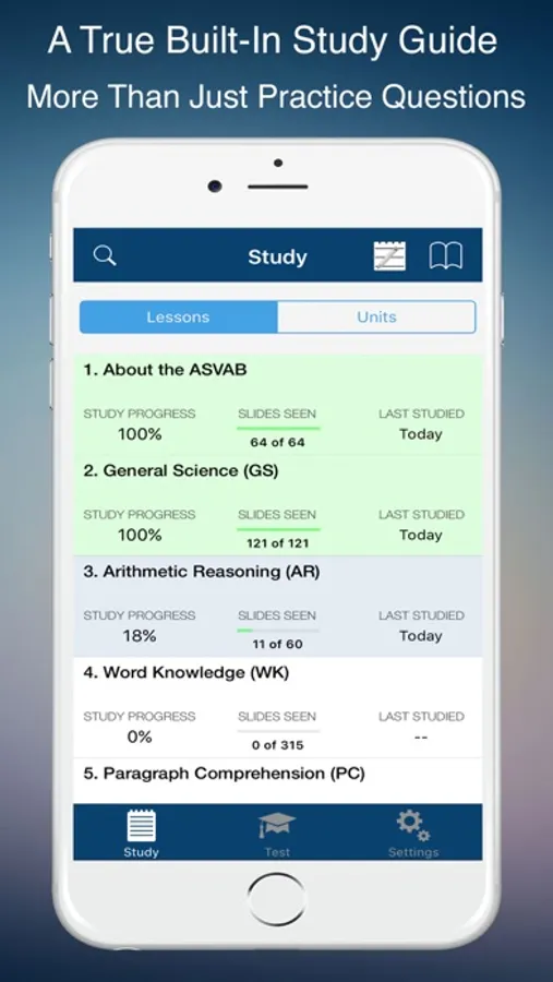 3. ASVAB PRO has a true BUILT-IN study guide. You can study over 1,000 instructional and tip slides covering all subjects. With ASVAB PRO you can brush up on topics and learn valuable tips without ever leaving the app.