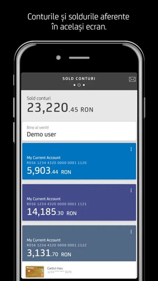 Trebuie doar sa selectezi contul din care au fost facute. Prin swipe stanga vezi sumele intrate, iar prin swipe dreapta, platile.