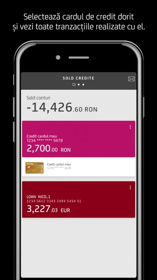 Atingi cu un deget cardul dorit si ai acces la setari. Utilizatorul autorizat poate sa schimbe limitele la POS, ATM, Internet, sa blocheze sau sa deblocheze instant cardul.