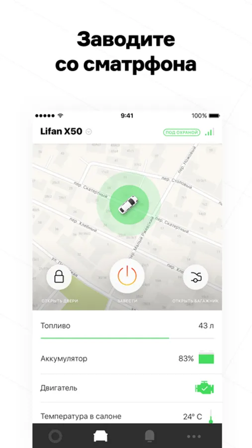 В приложении Lifan Connect реализованы функции удаленного управления системами автомобиля: открытие/закрытие дверей и багажника, управление системами автозапуска/предпусковыми подогревателями и штатной сигнализацией.