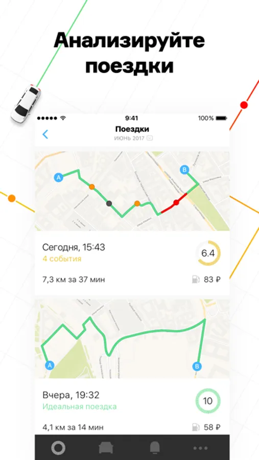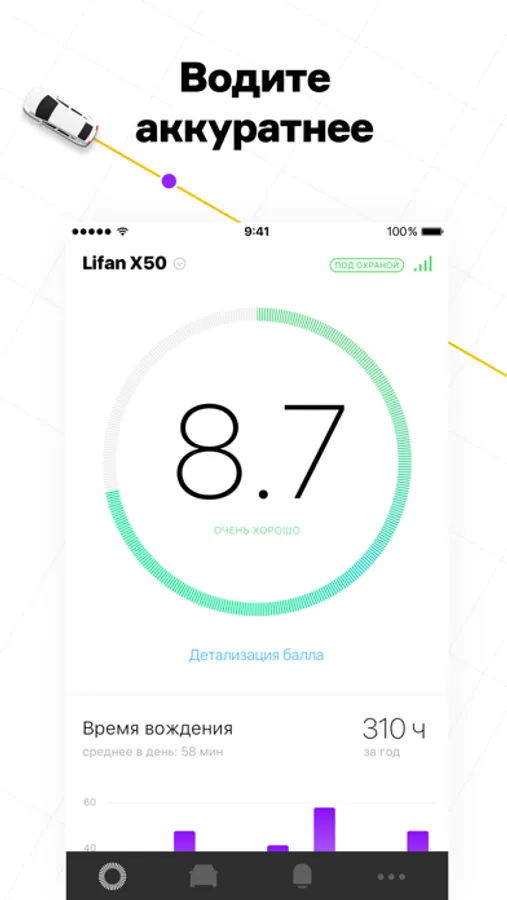 Система оценивает ваше вождение и дает рекомендации, как водить аккуратнее и безопаснее. Следуя рекомендациям, вы сможете оптимизировать свои расходы на автомобиль, например, сократить расход топлива, уменьшить износ деталей и сэкономить на штрафах.