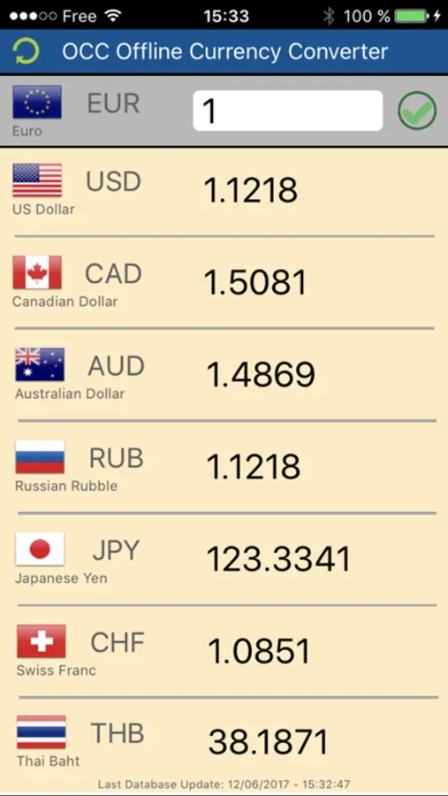 The exchange rates database is updated each time the internet connection is available, and you can update it manually if you want.