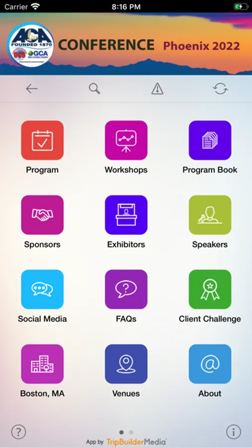 This app is provided at no charge by the American Correctional Association (ACA). It was designed and developed by TripBuilder Media Inc. If you have any questions, or need any support regarding how to use this app, please submit a Support Ticket (located within the Help icon in the app).