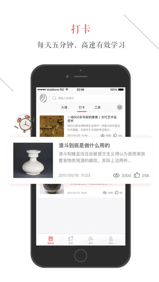 - 通过每天的“打卡”活动,采用碎片化的方式进行陶瓷艺术知识点的补充。