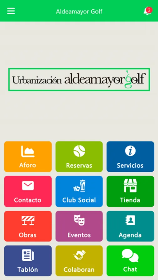 Aplicación de información, comunicación y reservas para los vecinos de la Urbanización Aldeamayor Golf.