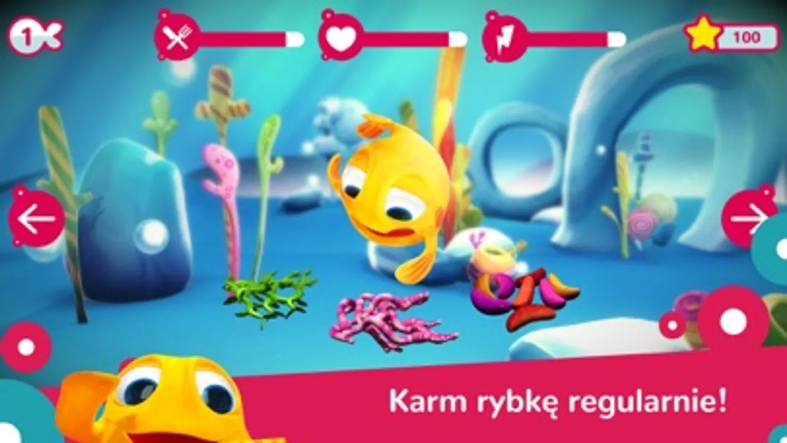 Wciel się w rolę troskliwego opiekuna i zapewnij rybce regularne zabawy, kąpiele, posiłki i drzemki!